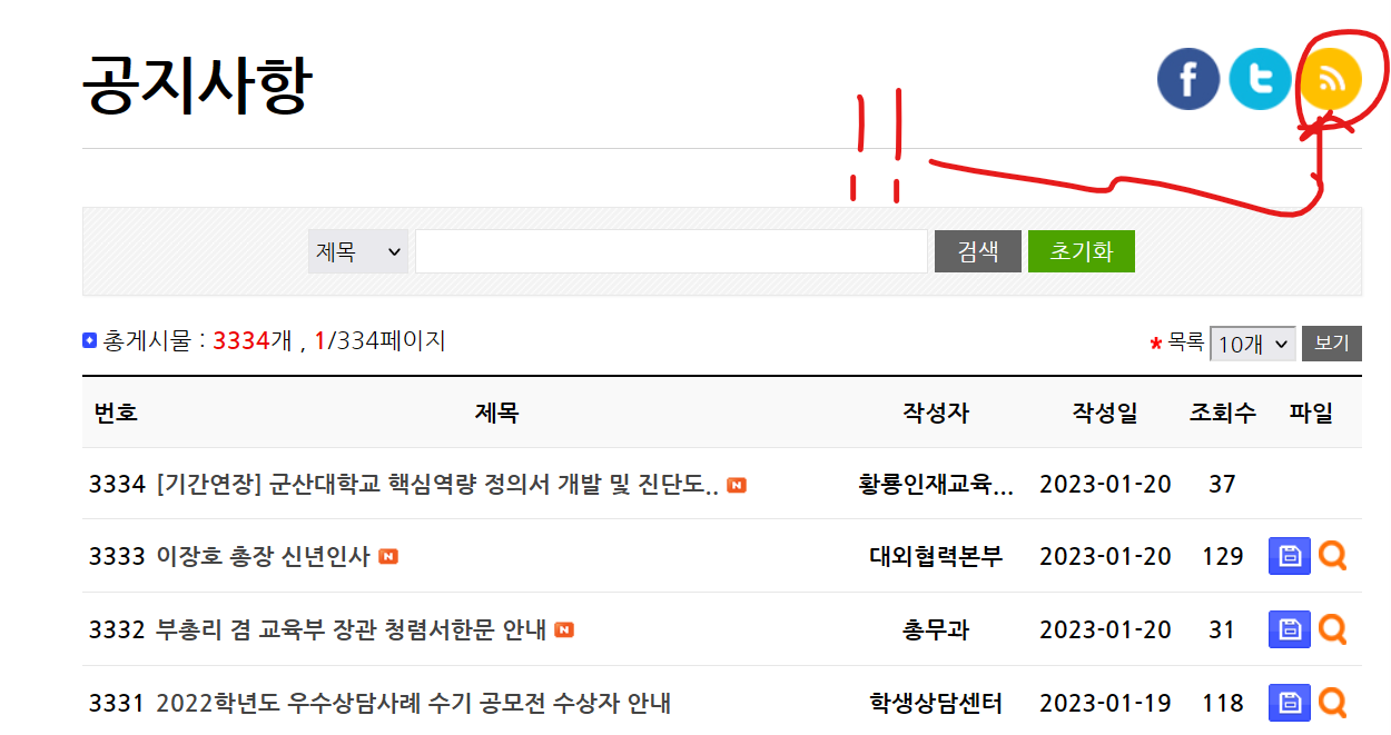 1번 공지사항 정보 긁기는 웹 2.0의 산물인 RSS를 이용하기로 했다.