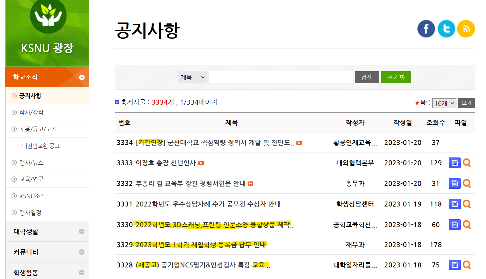 내가 다닌 군산대학교는 교내 공지사항에 유용한 정보가 올라오지만 아무도 모른다