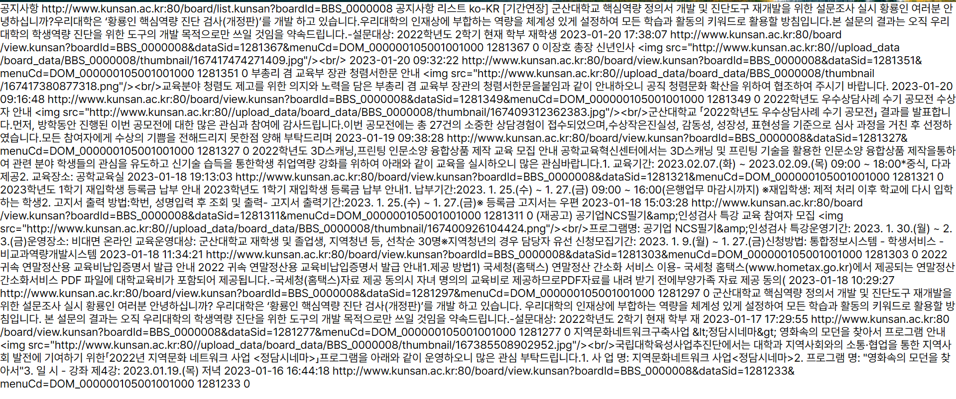 이것이 존재하지 않았다면 웹 스크래핑 기술을 사용해야했지만 다행이 군산대 웹페이지는 RSS를 친절하게 제공하고 있었다.