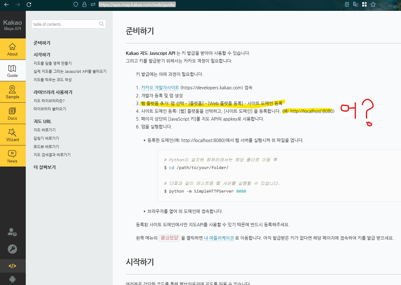 카카오 지도 api설명문서