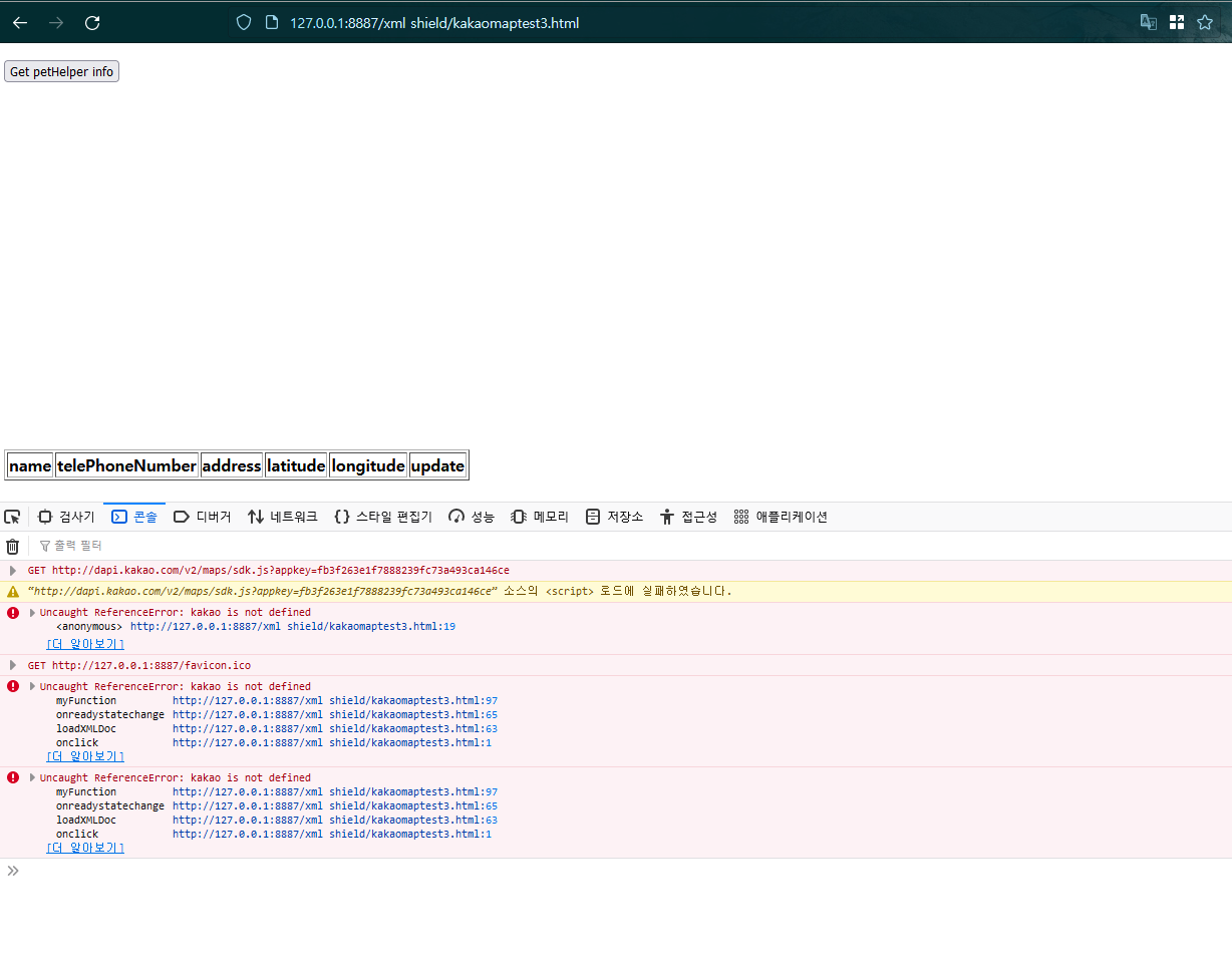 ReferenceError: kakao is not defined 에러 문의드립니다