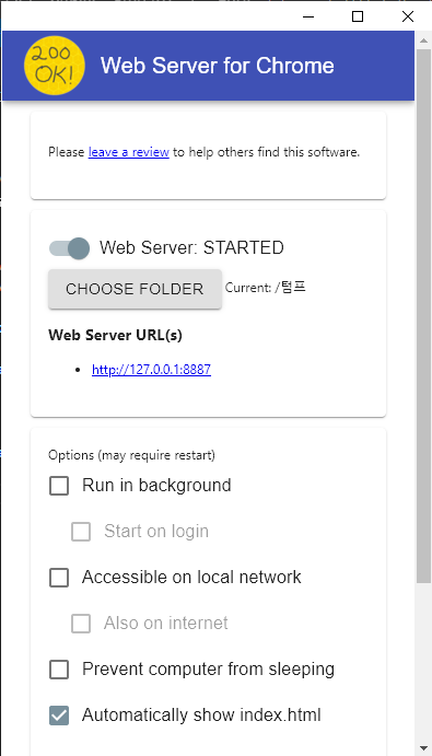 크롬 웹서버