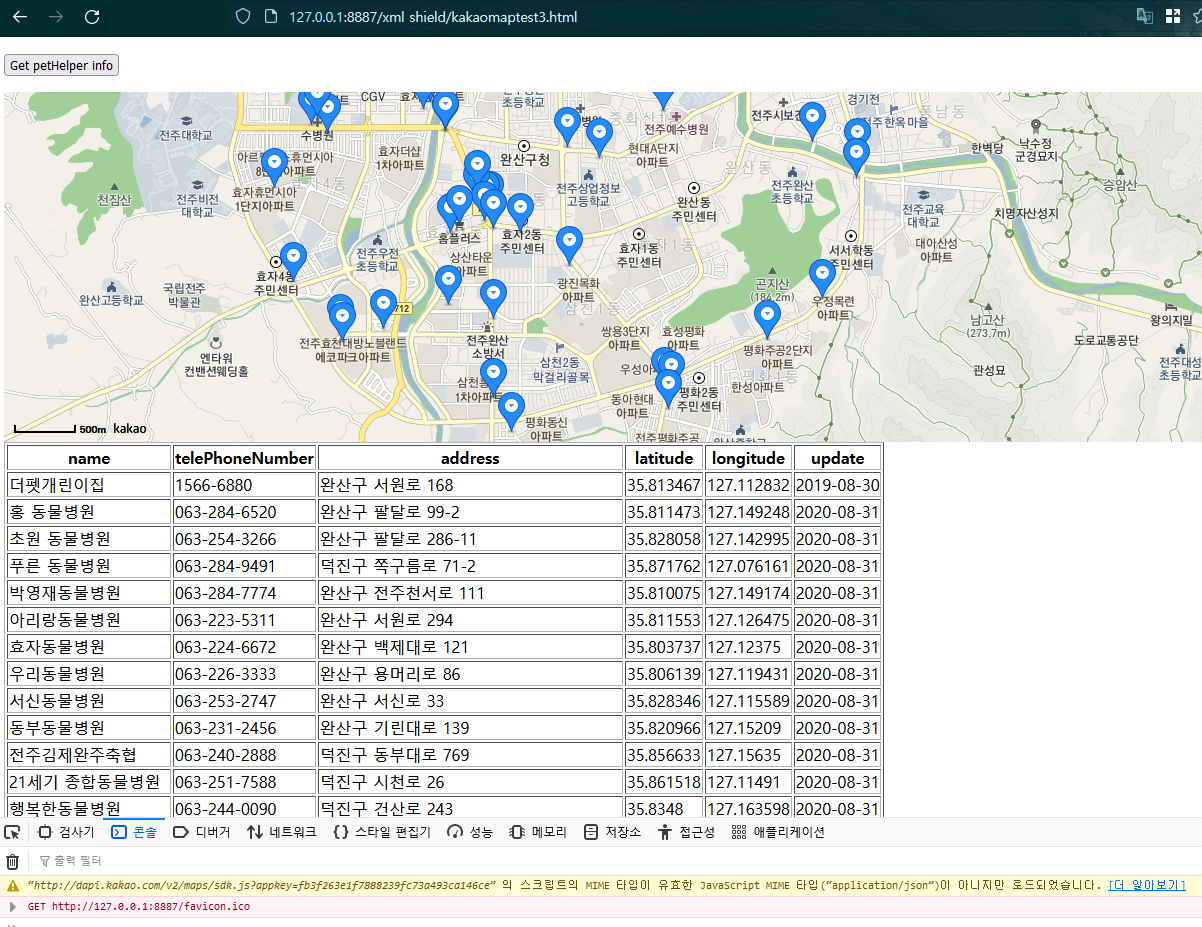 카카오맵은 특성상 서버를 실행해야만 동작하고