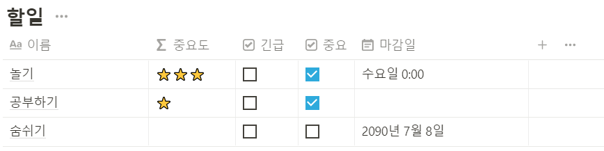 와 같은 노션 우선순위 테이블 만들기가 있었다.