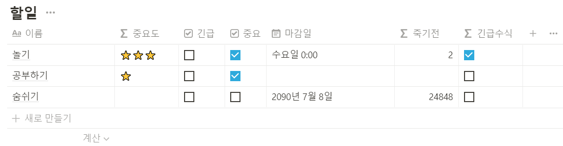 와 같은 노션 우선순위 테이블 만들기가 있었다.
