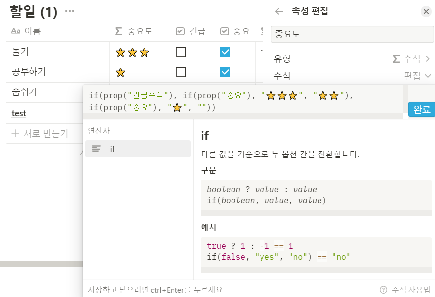 if(prop("긴급수식"), if(prop("중요"), "⭐⭐⭐", "⭐⭐"), if(prop("중요"), "⭐", ""))