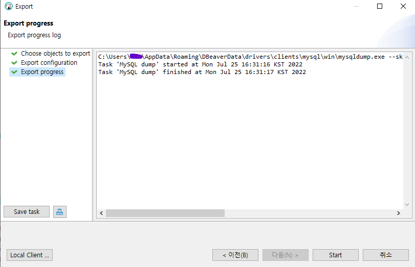 [DBeaver] mysql 8버전 이상에서 SQL DUMP시 에러 문제 해결java.io.IOException: Process failed (exit code = 2). See error log.