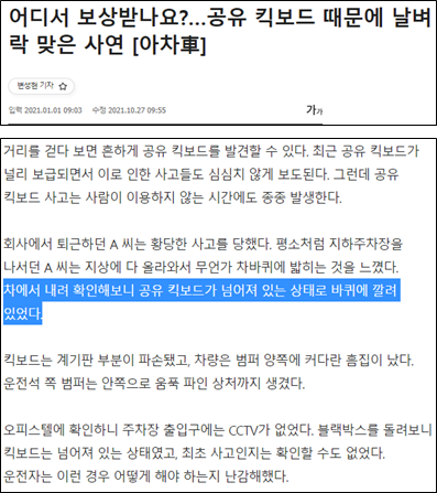 킥보드 불법 주정차가 얼마나 위험한지 뉴스의 사례를 참고하면서 몸소 증명해보았다.
